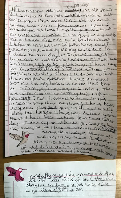 My daughter spent a long time tackling a college task today; she had to write independently about how she has been affected by life in lockdown.